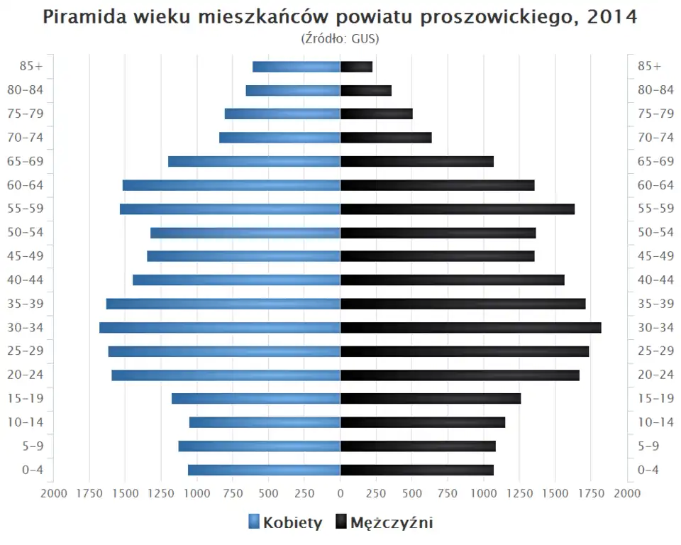 - Piramida wieku mieszkańców powiatu proszowickiego w 2014 roku[25].