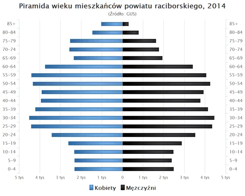 - Piramida wieku mieszkańców powiatu raciborskiego w 2014 roku[4].