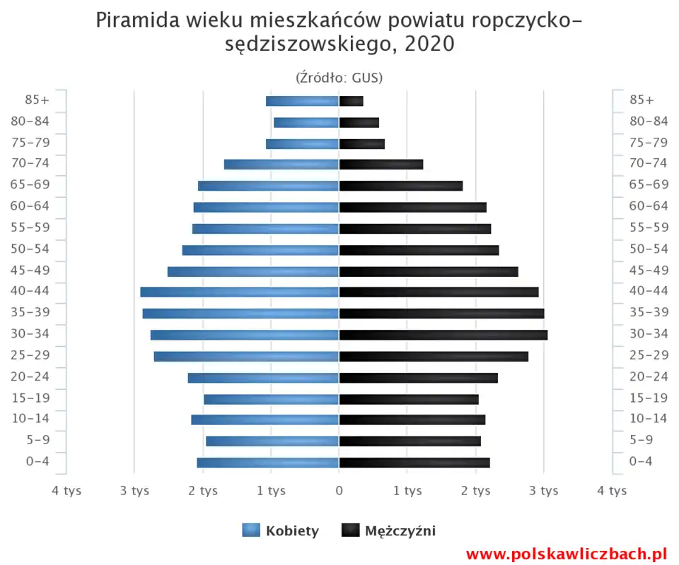 - Piramida wieku mieszkańców powiatu ropczycko-sędziszowskiego w 2021 roku[1]