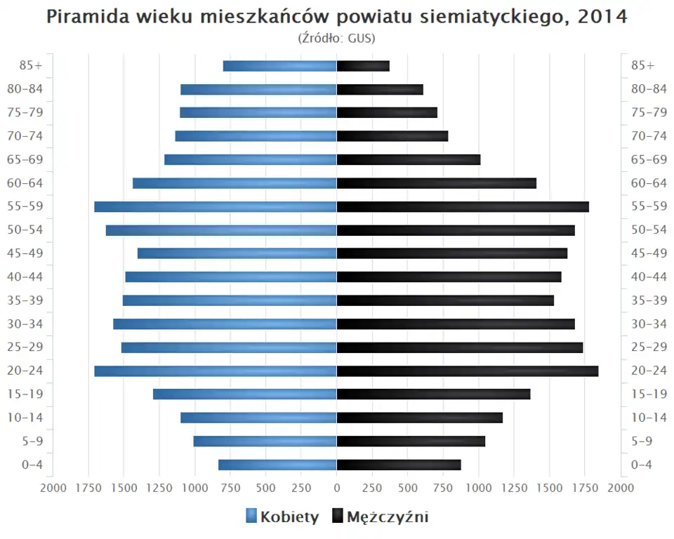 - Piramida wieku mieszkańców powiatu siemiatyckiego w 2014 roku[5].