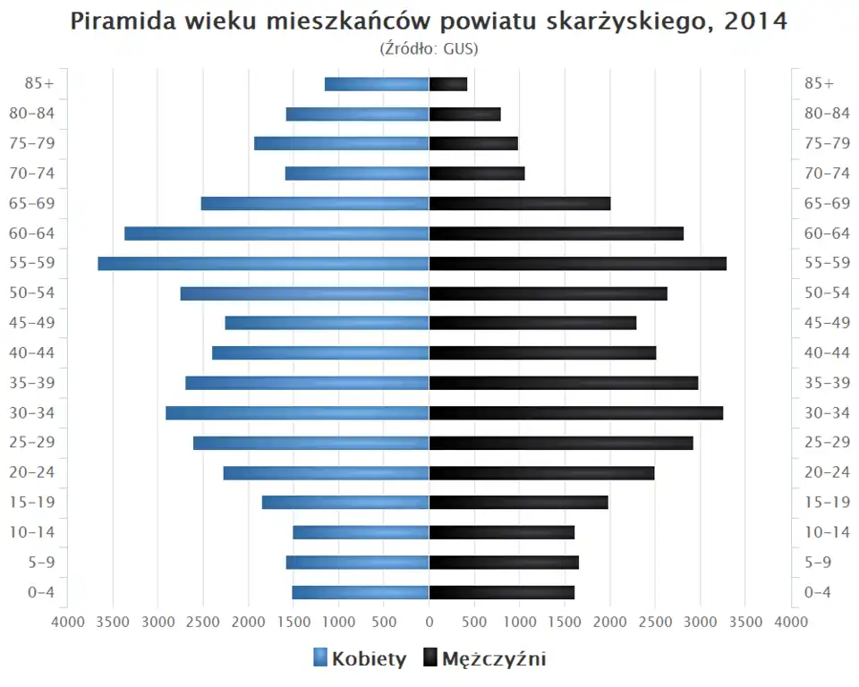 - Piramida wieku mieszkańców powiatu skarżyskiego w 2014 roku[6].
