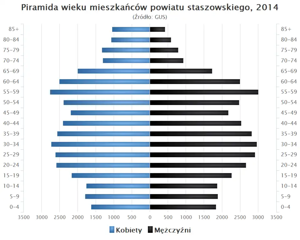 - Piramida wieku mieszkańców powiatu staszowskiego w 2014 roku[17].