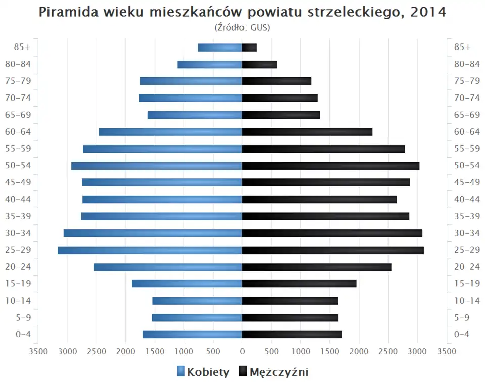 - Piramida wieku mieszkańców powiatu strzeleckiego w 2014 roku[5].