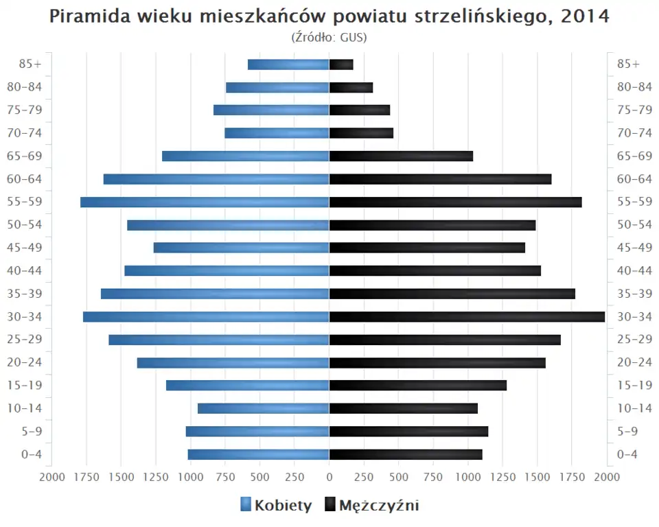 - Piramida wieku mieszkańców powiatu strzelińskiego w 2014 roku[3].