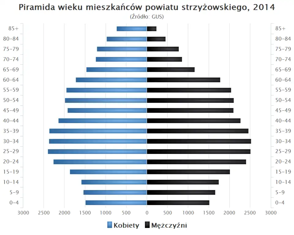 - Piramida wieku mieszkańców powiatu strzyżowskiego w 2014 roku[4].