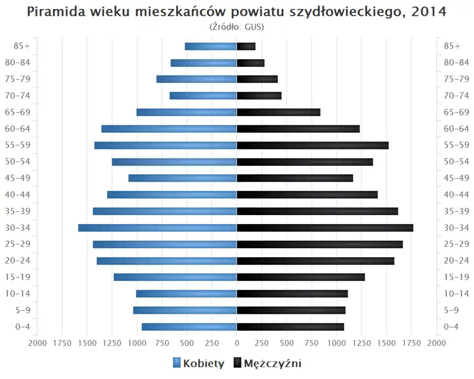 - Piramida wieku mieszkańców powiatu szydłowieckiego w 2014[8].