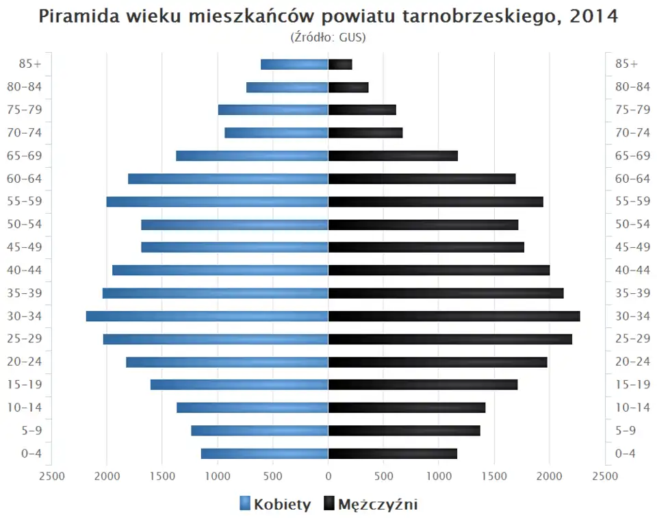 - Piramida wieku mieszkańców powiatu tarnobrzeskiego w 2014 roku[5].
