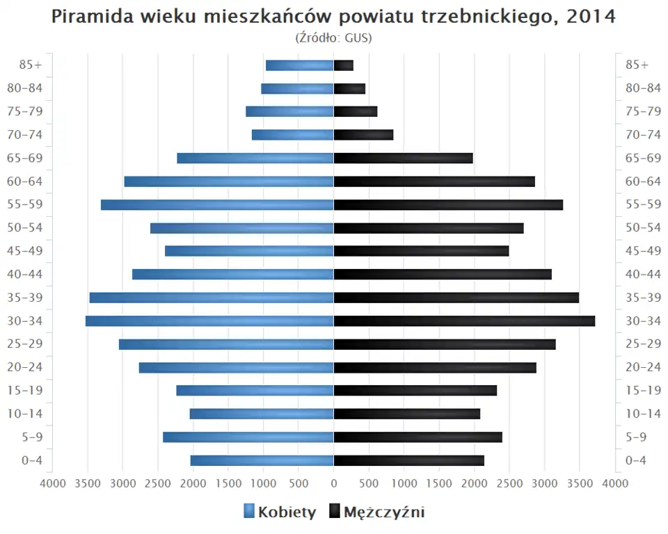 - Piramida wieku mieszkańców powiatu trzebnickiego w 2014 roku[2].