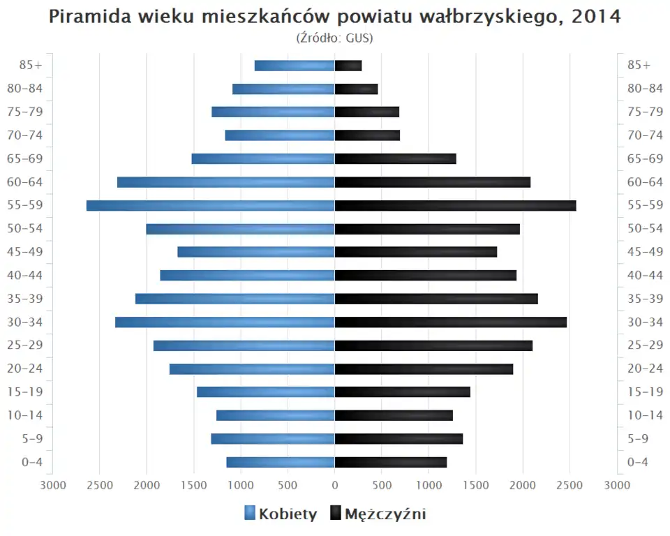 - Piramida wieku mieszkańców powiatu wałbrzyskiego w 2014 roku[21].