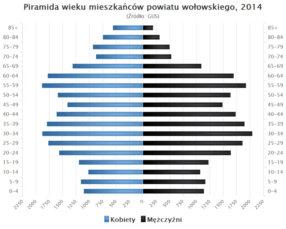 - Piramida wieku mieszkańców powiatu wołowskiego w 2014 roku[2].
