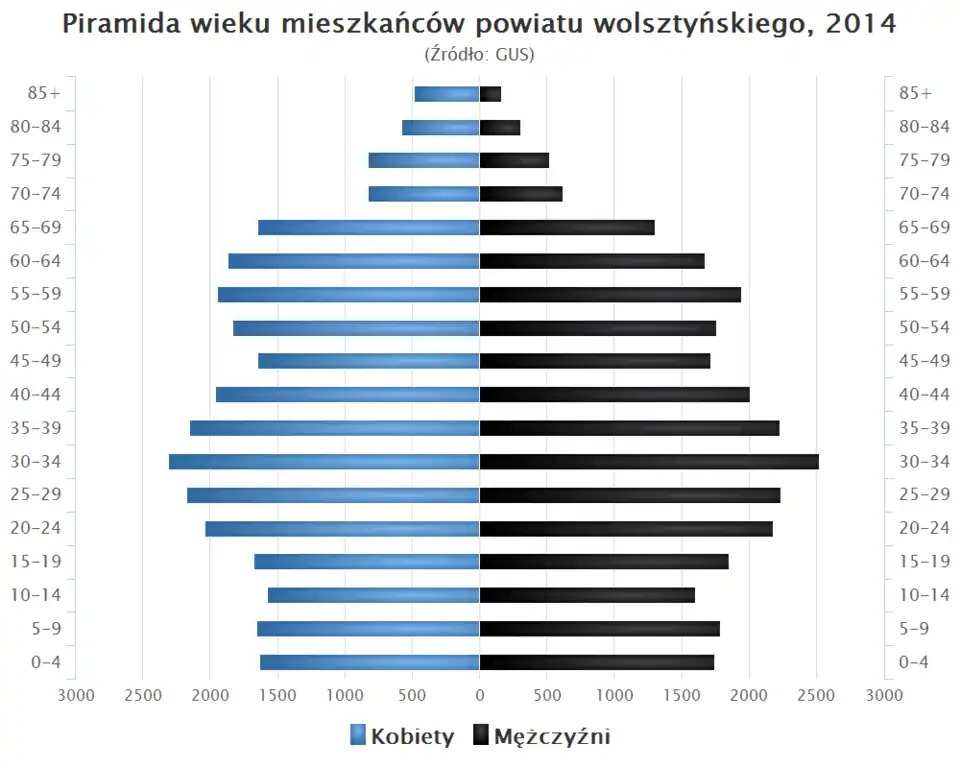 - Piramida wieku mieszkańców powiatu wolsztyńskiego w 2014 roku[4].