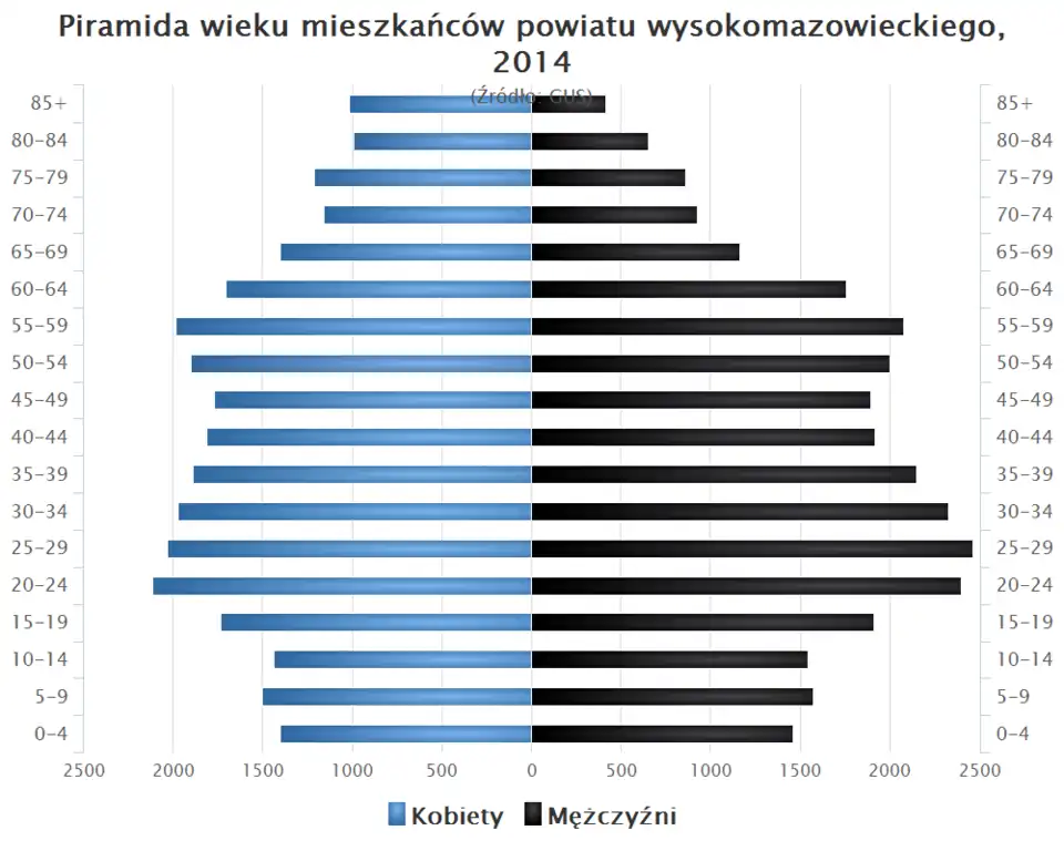 - Piramida wieku mieszkańców powiatu wysokomazowieckiego w 2014 roku[8].