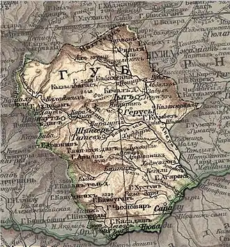 Powiat zangezurski powstał 25 lutego 1868 z mocy ukazu carskiego z 9 grudnia 1867 tworzącego gubernię jelizawietpolską. W skład nowo utworzonego powiatu weszły ziemie istniejących wcześniej powiatu ordubadzkiego guberni erywańskiej i powiatu szuszyńskiego guberni bakijskiej. Ziemie te należały do Rosji od traktatów w Giulistanie z 1813 i w Turkmanczaj z 1829, kończących wojny rosyjsko-perskie. Wcześniej tereny te wchodziły w skład chanatu szuszyńskiego (karabaskiego) podległego Persji.