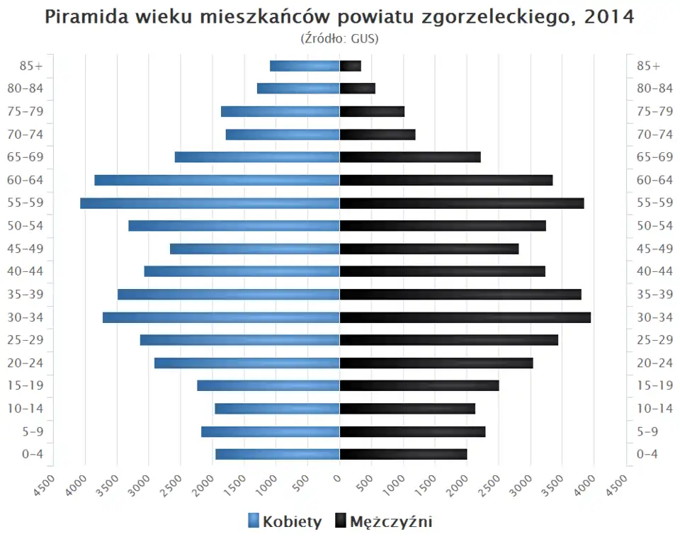 - Piramida wieku mieszkańców powiatu zgorzeleckiego w 2014 roku[3].