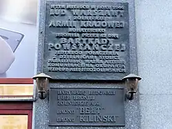 - ↑ Opis tabliczki z dodanym opisem działań w trakcie powstania [online], armiakrajowa.org.pl [dostęp 2020-08-02].