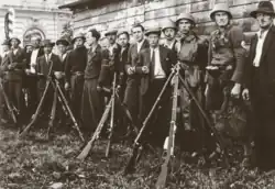 ![]() Sudeccy powstańcy niemieccy eskortujący pojmanych żołnierzy czechosłowackich | |||