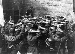 Od zachodu Warszawę otoczono kordonem posterunków, które miały uniemożliwić ucieczkę ludności cywilnej oraz przenikanie do miasta oddziałów partyzanckich z pobliskich lasów[110]. Po zajęciu Pragi przez Armię Czerwoną (14 września) Warszawa znalazła się bezpośrednio w strefie frontowej.