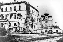 ![]() Mapa walk w Jarosławiu. Na czarno zaznaczono całkowicie zniszczone obszary miasta. | |||