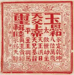 W połowie XIX wieku bunty te stały się zarzewiem wielkiego ruchu o charakterze religijno-militarnym, zwanego powstaniem tajpingów. Przywódcą ruchu stał się charyzmatyczny mistyk, Hong Xiuquan. Kierując się ideą powszechnej równości i braterstwa proklamował on w sierpniu 1851 roku utworzenie Niebiańskiego Królestwa Wielkiego Pokoju (chiń. 太平天囯 Tàipíng Tiānguó), od którego chińskiej nazwy pochodzi nazwa powstania[2]. Sam siebie obwołał władcą. Ogłosił też nową religię, będącą mieszanką chrześcijaństwa i konfucjanizmu. Wprowadzała ona purytańskie zasady moralne, wspólną własność majątkową, równy podział ziemi, równość kobiet i mężczyzn, mandarynów i chłopów itp. wprowadzając w społeczeństwie surową dyscyplinę i wojskową organizację. Znakiem tajpingów była żółta przepaska na głowie i długie włosy bez warkoczyka.