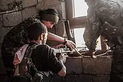 - ↑ Syrian Kurds are now armed with sensitive US weaponry, and the Pentagon denies supplying it [online], 12 maja 2017 [dostęp 2017-05-12] [zarchiwizowane z adresu 2017-05-12].