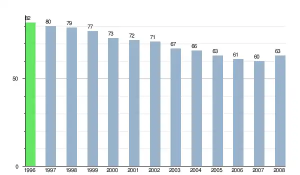Zmiany liczby ludności w miejscowości Príslop od 1996 roku.