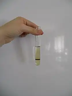 3 do tlenku azotu(II) za pomocą zakwaszonego roztworu siarczanu żelaza(II) i obserwacji powstawania nietrwałego kompleksowego jonu nitrozylżelaza(II) [Fe(NO)]2+[1] o intensywnym brązowym zabarwieniu. Dzięki specyficznej technice wykonania próby (wprowadzenie roztworów do probówki bez ich zmieszania), zabarwienie ma kształt obrączki na granicy roztworów.
