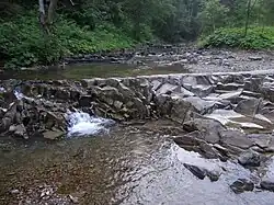 Powstaje w wyniku erozji wgłębnej wcinającej się nierównomiernie w podłoże skalne o zróżnicowanej odporności (szybciej w warstwy mniej odporne), co prowadzi do wykształcenia schodowego profilu podłużnego. Powstają na przemian odcinki koryta o mniejszym i większym spadku, tworzące progi i załomy skalne, a czasami baniory pomiędzy nimi.