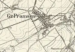 W 1295 w kronice łacińskiej Liber fundationis episcopatus Vratislaviensis (pol. Księga uposażeń biskupstwa wrocławskiego) miejscowość wymieniona jest jako wieś lokowana na prawie polskim iure polonico – Pramsina; we fragmencie Pramsina solvitur decima more polonico[9].