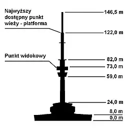 | 2 | 209 | 1616,04 | 15 na południowy wschód | platforma szczytowa na wieży telewizyjnej | 50°04′58,90″N 17°13′51,45″E/50,083028 17,230958 |