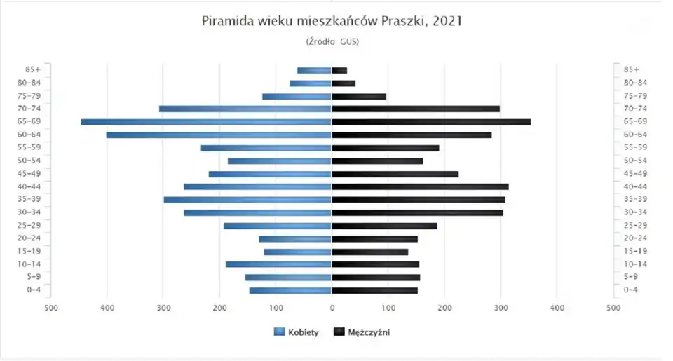 - Piramida wieku mieszkańców Praszki w 2021 roku[10].