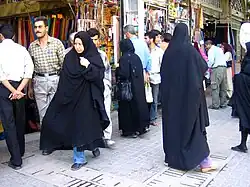 Kobiety w Iranie podlegają dyskryminacji w prawie i praktyce. Kobiety i dziewczęta nie są wystarczająco chronione przed przemocą (w tym domową), gwałtami małżeńskimi oraz wczesnymi i wymuszonymi małżeństwami. Przepisy dotyczące zasłaniania twarzy hidżabem pozwalają policji i siłom paramilitarnym na prześladowania kobiet pod pretekstem strzeżenia moralności publicznej[40]. Irańskie organizacje na rzecz praw kobiet należą do najprężniej rozwijających się inicjatyw kobiecych na Bliskim Wschodzie[41]. W 2014 blisko 3,6 miliona kobiet było na różne sposoby karane za nieprzestrzeganie obowiązku noszenia nakrycia głowy[42]. W grudniu 2017 szef policji Teheranu poinformował, że władze nie będą aresztować ludzi (głównie kobiet) za łamanie zasad dotyczących ubioru[2].