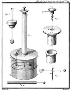 - W 1785 Charles Coulomb opisał cykl prac, w których posługując się skonstruowaną przez siebie precyzyjną wagą skręceń, określił siły działające pomiędzy ładunkami elektrycznymi.