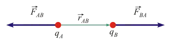 gdzie poszczególne wielkości pokazane są na rysunku. Jeżeli i są wektorami wodzącymi odpowiednio ładunków i wtedy a prawo Coulomba wyraża wzór: