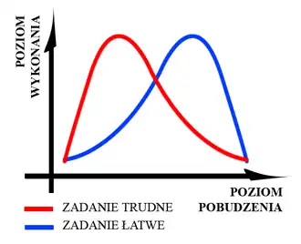 • Dla zadań trudnych optymalny poziom pobudzenia jest niższy, niż dla zadań łatwych.
