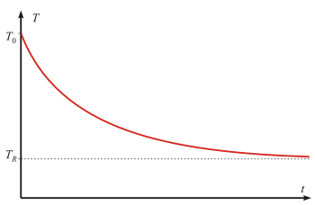 Z powyższego, przy założeniu stałości temperatury otoczenia, otrzymujemy eksponencjalną zależność temperatury stygnącego układu od czasu stygnięcia: