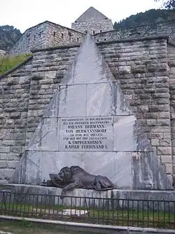 Obecnie twierdza jest w ruinach, koło niej zaś jest pomnik z obrobionego kamienia z żeliwną postacią umierającego lwa. Pomnik został wybudowany ku pamięci trzydniowej bitwy w maju 1809 między żołnierzami Napoleona pod dowództwem Eugeniusza de Beauharnais i austriackimi obrońcami (slunjski pułk graniczny), którzy pod wodzą kapitana Johanna Hermanna von Hermannsdorfa walczyli do końca. Francuzi zdobyli i spalili twierdzę, a rzadkich pozostałych przy życiu austriackich żołnierzy wzięli do niewoli. 250 żołnierzy z von Hermannsdorfem, którzy polegli w boju, jest pochowanych we wspólnym grobie przy twierdzy nad drogą. W 1848 na zamówienie cesarza Ferdynanda I przy drodze postawiono pomnik w kształcie piramidy, trzy lata później zaś zostało przez nim umieszczone wyobrażenie lwa, który leży na dynamicie. Motto założonych w 1912 CK saperów (K.u.k. Sappeure) odnosiło się do tych poległych, jak i do poległego w mającej miejsce w tym samym czasie obronie Malborghetto Valbruny kapitana wojsk inżynieryjnych Friedricha Hansela :„Naśladujcie ich! Możecie ich dosięgnąć, prześcignąć nigdy!”
