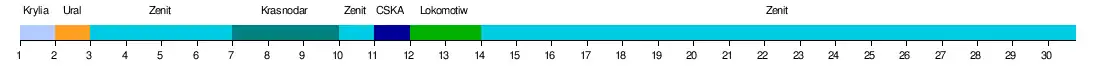 | Zenit | 4 | 2 | 1 | 1 | 1 | 1 | 5 | 2 | 2 | 1 | 5 | 4 | 2 | 1 | 1 | 1 | 1 | 1 | 1 | 1 | 1 | 1 | 1 | 1 | 1 | 1 | 1 | 1 | 1 | 1 |