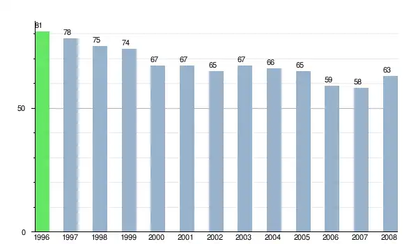Zmiany liczby ludności w miejscowości Prituľany od 1996 roku[8].