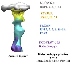 - ↑ Pinfen Yang i inni, Radial spoke proteins of Chlamydomonas flagella, „Journal of Cell Science”, 119 (Pt 6), 2006, s. 1165–1174, DOI: 10.1242/jcs.02811, ISSN 0021-9533, PMID: 16507594, PMCID: PMC1973137 [dostęp 2019-10-26].