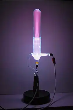 Źródłem jonów anodowych jest zwykle anoda pokryta halogenkami metali alkalicznych lub berylowców[5]. Jony oderwane od anody są przyspieszane w polu elektrycznym. W lampach wyładowczych jony zderzają się z atomami, a zderzając się z nimi wzbudzają je. Atomy wracając do stanu podstawowego emitują promieniowanie świetlne. Promieniowanie to jest widoczne w przestrzeni za katodą, gdzie świecenia nie wywołują zderzenia atomów z elektronami.
