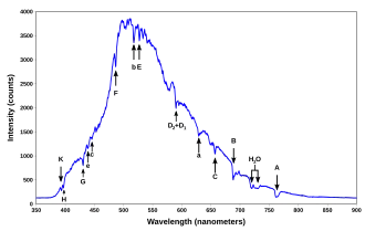 Skład widmowy promieniowania rozproszonego zależy od stanu zachmurzenia, zamglenia i czystości atmosfery. Przy bezchmurnej pogodzie widmo tego promieniowania jest ściśle określone. Jego charakterystyczną cechą jest wyraźna dominacja światła niebieskiego nad czerwonym, co nadaje temu promieniowaniu charakterystyczny błękitny kolor (kolor nieba)[1]. Z powodu rozpraszania głównie światła niebieskiego, światło docierające bezpośrednio ma zabarwienie żółte (spowodowane niedoborem światła niebieskiego).