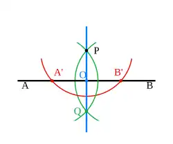 - Jak narysować prostopadłą dwusieczną odcinka za pomocą cyrkla i linijki (ang.); animowany pokaz