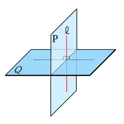 - dwie płaszczyzny i są prostopadłe, gdy istnieje prosta zawarta w płaszczyźnie i prostopadła do płaszczyzny [5].
