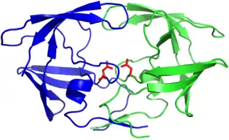 - ↑ Jeffrey Stebbins i inni, The 80’s loop (residues 78 to 85) is important for the differential activity of retroviral proteases 1 1Edited by A. R. Fresht, „Journal of Molecular Biology”, 267 (3), 1997, s. 467–475, DOI: 10.1006/jmbi.1997.0891 [dostęp 2024-03-31] (ang.).