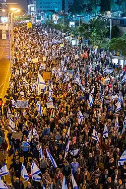 - ↑ Thousands March in Tel Aviv in Protest of Netanyahu's Far-right Gov't, Judicial Overhaul, „Haaretz” [dostęp 2023-04-02] (ang.).