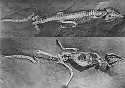 - 1 2 3 Edwin Harris Colbert, Charles Craig Mook. The ancestral crocodilian Protosuchus. „Bulletin of the American Museum of Natural History”. 97, s. 147–182, 1951. (ang.).