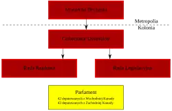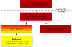 Głową kolonii był gubernator generalny. Był on przedstawicielem monarchii brytyjskiej w kolonii i posiadał szeroki zakres władzy. Do niego należało rozpisywanie wyborów, powoływanie i rozwiązywanie rady legislacyjnej, powoływanie i odwoływanie rządów. Gubernator nie był zobowiązany do popierania rządu opartego na większości parlamentarnej, choć od 1848 przyjęło się w zwyczaju tworzenie autentycznego rządu przedstawicielskiego.