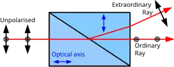 W pryzmacie Sénarmonta promień spolaryzowany s (z niem. senkrecht tj. promień o kierunku polaryzacji prostopadłym do płaszczyzny ilustracji, w której zawarte są wszystkie promienie) przechodzi bez odchylenia, podczas gdy promień spolaryzowany p (z niem. parallel tj. o kierunku polaryzacji w płaszczyźnie ilustracji) jest odchylany na styku klinów wewnątrz pryzmatu. Oba promienie wchodzące do pierwszego klina pryzmatu są promieniami zwyczajnymi (z ang. ordinary ray), gdyż kierunki polaryzacji obu promieni są prostopadłe do osi optycznej kryształu będącej kierunkiem propagacji. W drugim klinie pryzmatu promień spolaryzowany prostopadle s pozostaje promieniem zwyczajnym spolaryzowanym prostopadle do osi optycznej kryształu, podczas gdy promień spolaryzowany równolegle p staje się promieniem nadzwyczajnym (z ang. extraordinary ray) ze składową polaryzacyjną wzdłuż osi optycznej kryształu. W rezultacie promień spolaryzowany prostopadle s nie jest odchylany, gdyż wypadkowy współczynnik załamania światła nie zmienia się na miedzy kryształ-klej-kryształ, zasię fala spolaryzowana równolegle p jest załamywana, ponieważ wypadkowy współczynnik załamania zmienia się po zmianie z promienia zwyczajnego na nadzwyczajny.
