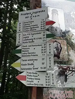 żółty - Przełęcz Jugowska – platforma widokowa pod Kozią Równią - przełęcz Kozie Siodło - Schronisko Sowa[2]