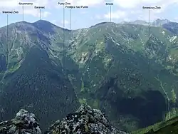 ![]() Poniżej Smreka (na środku) Przełęcz nad Puste. W głębi Rohacze | |
